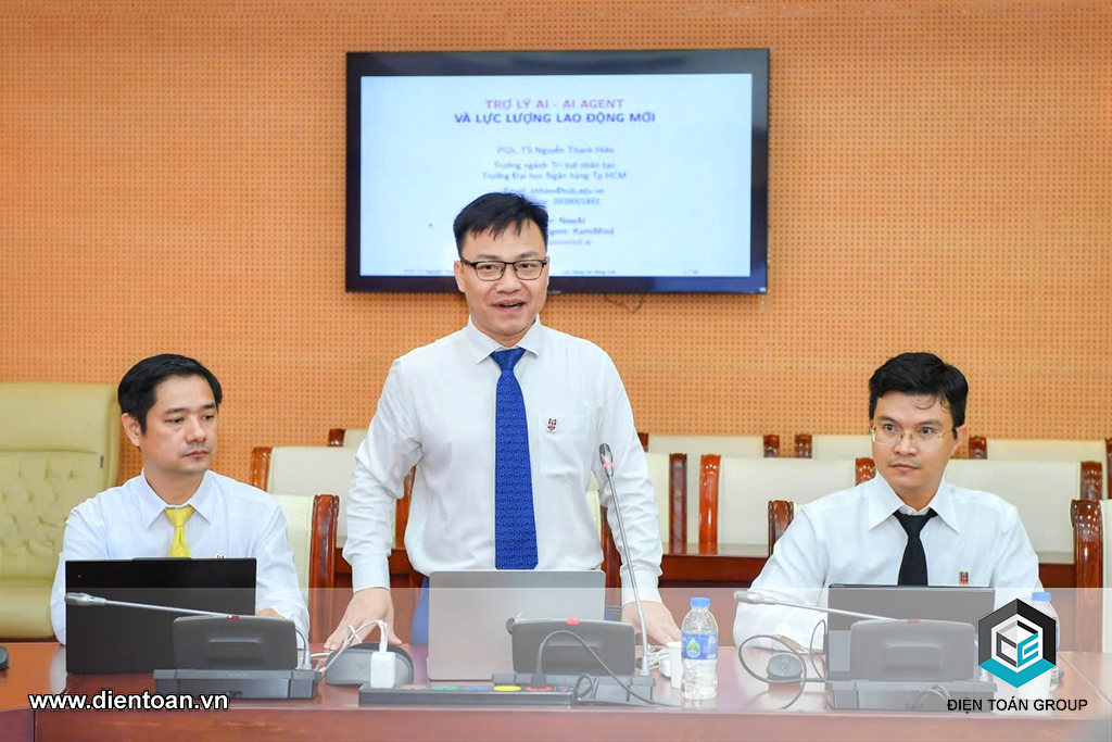 Cùng ngày (20/06/2025), các chuyên gia hàng đầu về trí tuệ nhân tạo (AI): (1)PGS.TS Thoại Nam - Giám đốc Trung tâm Kỹ thuật Điện toán, Trường ĐHBK - ĐHQG Thành phố Hồ Chí Minh. Viện trưởng Viện Khoa học và Công nghệ Tiên tiến liên ngành, và (2)PGS.TS Nguyễn Thanh Hiên - Trưởng ngành Trí tuệ nhân tạo (AI), Trường Đại học Ngân hàng TP.HCM - Kiêm Chủ tịch HĐQT Công ty NewAI (Công ty thành viên của Điện toán Group), đã có buổi đào tạo và chia sẻ về các chuyên đề cụ thể: